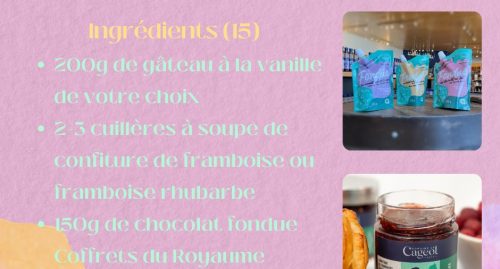 - 2-3 cuillères à soupe de confiture de framboise ou framboise et rhubarbe ou tartinade de bleuet sauvage