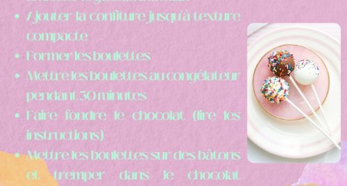 - Mettre les boulettes sur des bâtons et tremper dans le chocolat décorer au choix